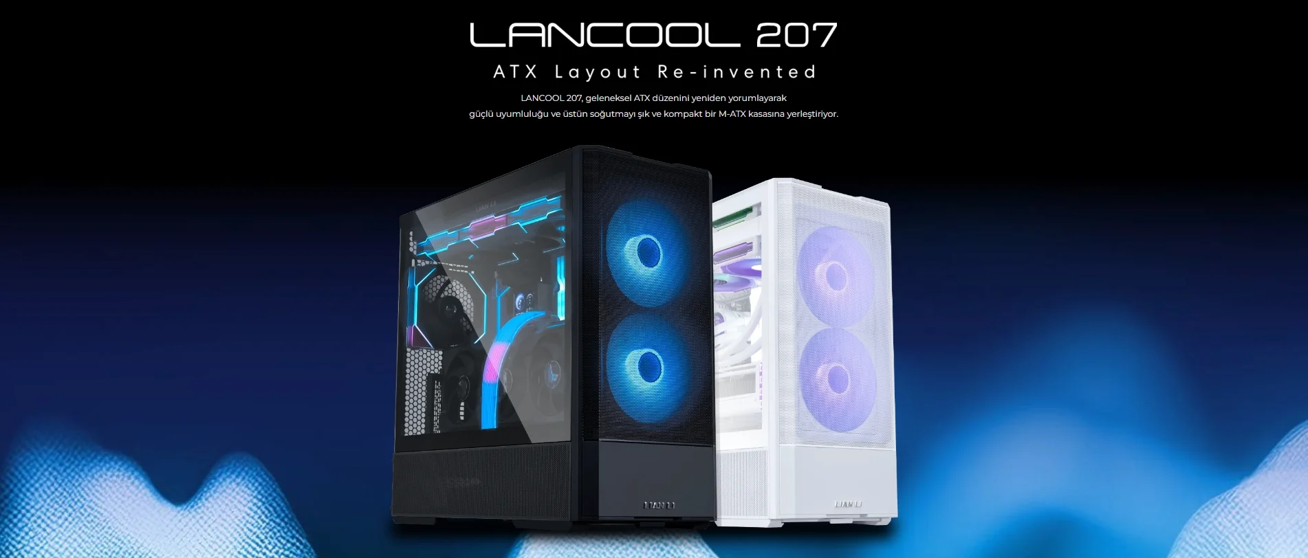 LANCOOL 207, geleneksel ATX düzenini yeniden yorumlayarak güçlü uyumluluğu ve üstün soğutmayı şık ve kompakt bir M-ATX kasasına yerleştiriyor.