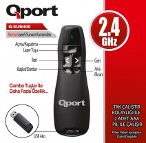 - QPORT Q-SUN400 2.4 GHZ USB KIRMIZI LAZERLİ SUNUM KUMANDASI - PRESENTER 15,00 $