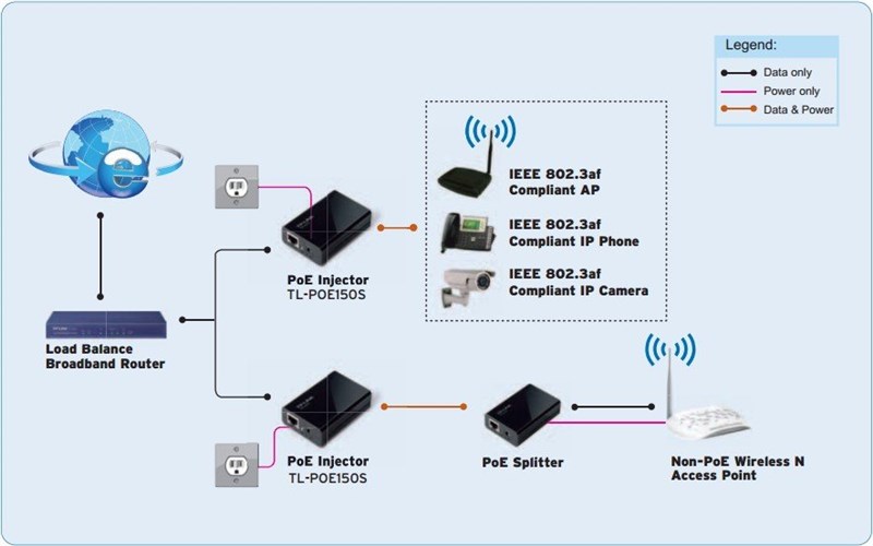 Bu Ürün Ne Yapar? PoE Injector TL-POE150S, IEEE 802.3af standardı ile tamamen uyumludur. AP, IP Kamera veya IP Telefon vs. gibi cihazları sabitlemek istediğiniz, ancak elektrik kablosu veya prizi olmayan yerlere ağınızı genişletmek için, IEEE 802.3af PoE uyumlu bütün PD’ler (Powered Devices) veya TP-LINK’in TL-POE10R’si veya diğer muadil ürünler gibi PoE Alıcı Adaptörleri ile çalışabilir.