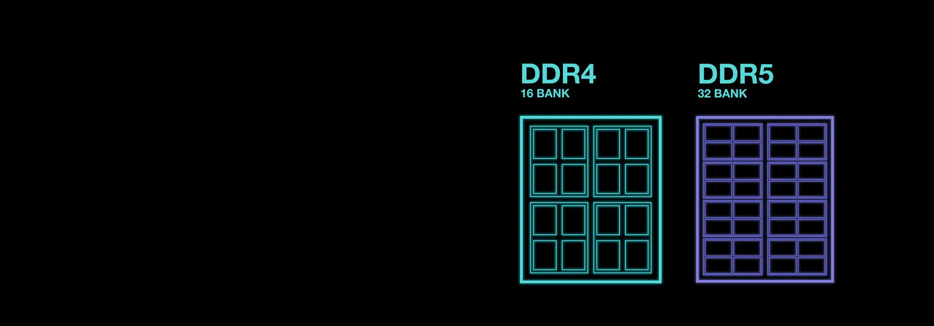 DDR5, 8 banka grubundan oluşan 32 bankaya (ayrı ayrı etkinleştirilebilen/devre dışı bırakılabilen depolama birimleri) kadar izin verir ve DDR4 standartlarında bulunan 16 bankadan erişim kullanılabilirliğini iki katına çıkarır; DDR5 patlama uzunluğu (tek bir DRAM okuma/yazma komutundan erişilebilen veri miktarı) da DDR4 patlama uzunluklarının iki katıdır. Güçlendirilmiş DDR5 performansının kullanıcılarımızın yepyeni bir deneyim yaşamasını sağlayabileceğine inanıyoruz.