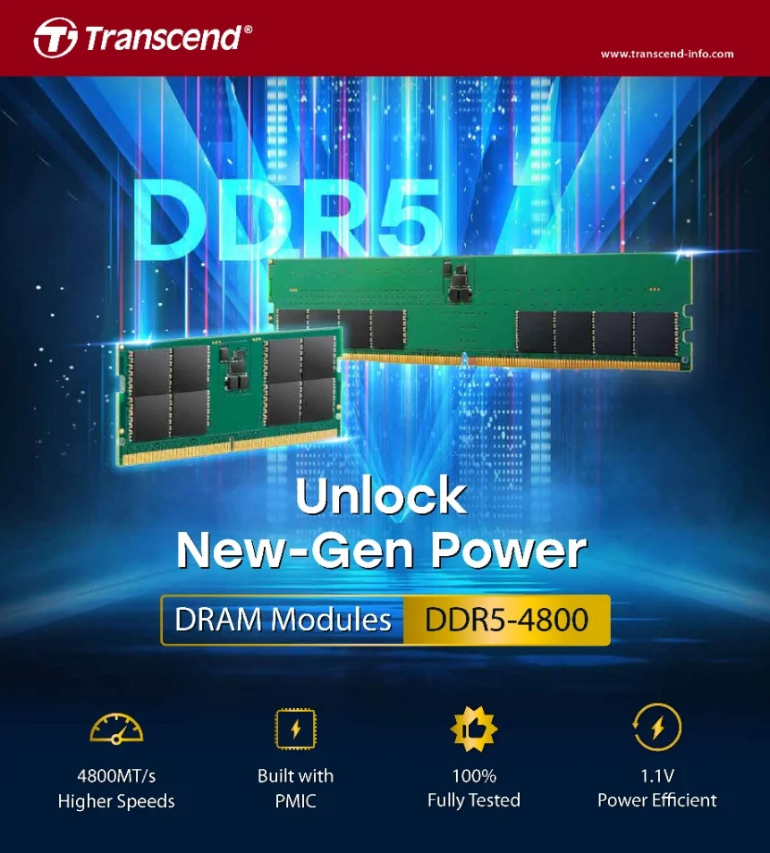- Transcend 32GB(1x32GB) 4800Mhz UDIMM DDR5 CL40 Ram (JM4800ALE-32G) 239,00 $